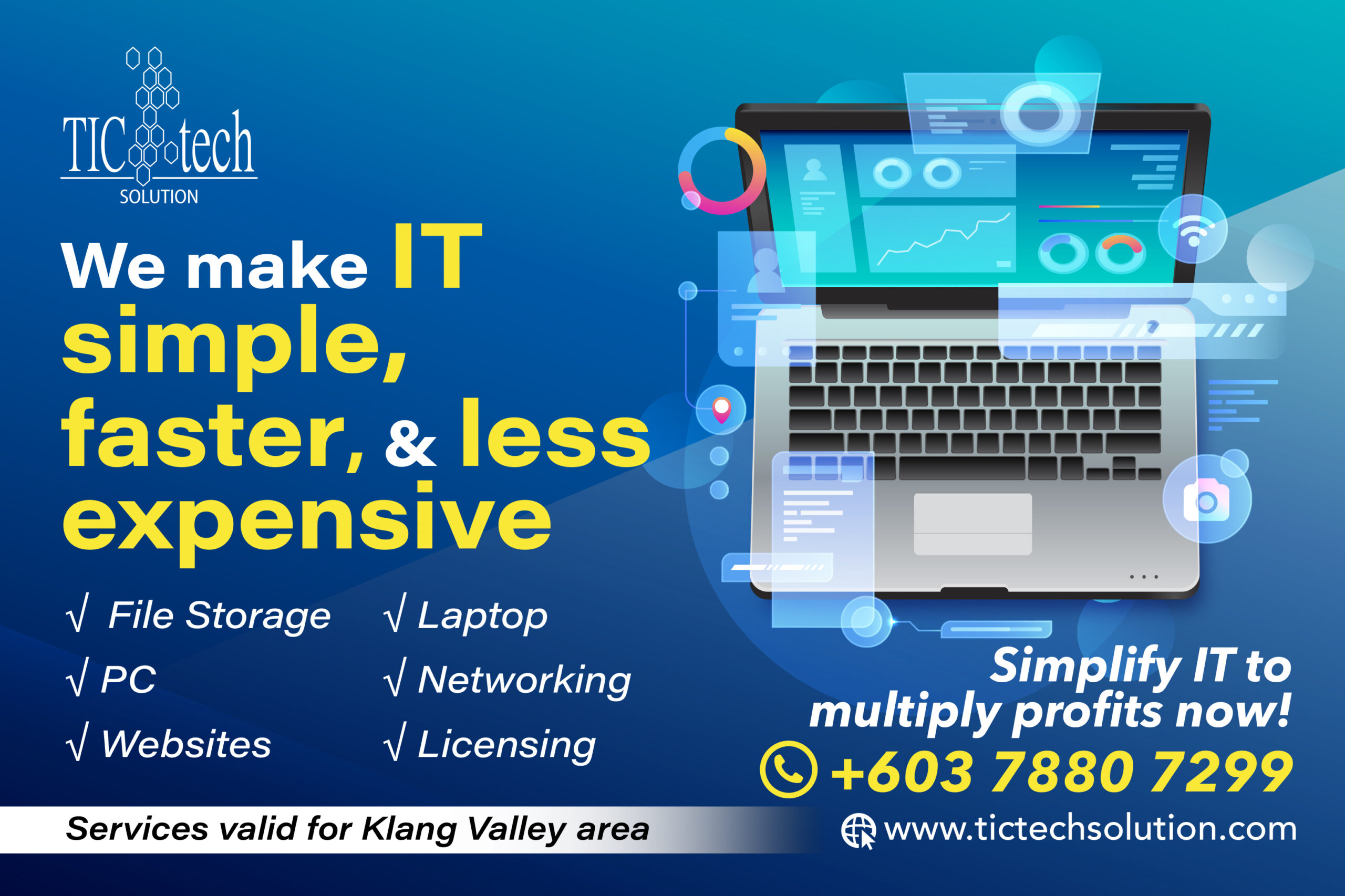 - Cloud Services: We will help you move your business to the cloud, providing you with access to secure and reliable cloud services that can increase your productivity and reduce your costs.